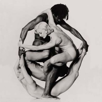 Cartoonishly dressed in chrome yellow unitards and blue satin boxer shorts, some with yellow circles and smiles on the backsides, Pilobolus lightened up after Ben's Admonition. Teasing choreography constantly tossed off the creative partnering, precision balance, and reciprocity for which Pilobolus is renowned. Plenty of movements with scrabbling, leap frogging, and vocalization punctuated the demanding physical combinations and made them seem like play.