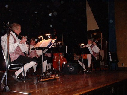The organizer of the dance, Walter Nelson, had announced at one of the dance classes preceding the ball that "English country dancing is a lot like the Army: it's easy to get in but very difficult to get out." He's right. Once you begin the combination, you better be prepared, because the dance doesn't stop until the end of the song, and everyone in the line is counting on you to do your part. A woman on the stage calls out the moves, just like in American country line dancing (think "Do-Si-Do 'round your partner!"). She might tell you to "set" (sashay from side to side), "turn solo" (spin in place), "gypsy" (change places with your partner), "gate" (spin your neighbor), "cast" (fall behind the neighboring couple in line), or - my personal favorite - "chase" (one partner chases the other partner in a circle). Each dance has its own combination of steps that repeats over and over. You constantly have to be aware of what is coming next.
