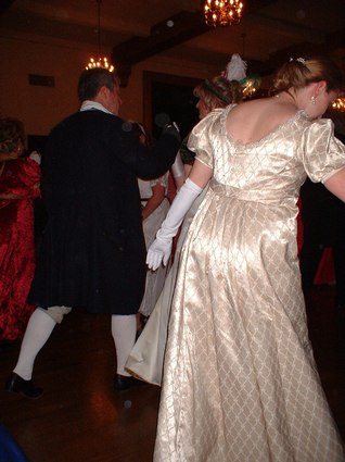 Perhaps that's why, when I heard about the Jane Austen Evening in Pasadena sponsored by the Lively Arts History Association - a Reseda-based non-profit that sponsors vintage social dance gatherings throughout Southern California - I perked up. It promised a night of English country dance and period dress spanning the lifetime of Jane Austen (1774-1817). Visions of myself clad in a regal gown and partnered with a dashing gentleman danced before my eyes. How wonderful courtship was back then, I mused. It had its own choreography, and everyone followed it. When ladies attended balls, they could return from the evening with a prospective husband. Furthermore, all men danced; refined dancing was the mark of a true gentleman. As a contemporary woman in search of a man who dances, I sometimes wonder if I was born in the wrong century. Never mind that women in these eras had significantly less freedom than I do now to choose a mate and pursue a career. There was romance. There was courtesy. Above all, hadn't Elizabeth landed Mr. Darcy?