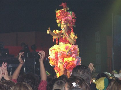 Inside, the festive sounds of local singing sensation Katia Moraes - who resembled a bouquet of flowers in her full Carnaval regalia - reverberated through the dome. Footage of samba schools parading down the streets of Rio rolled on huge screens on either side of the stage. During Katia's hour-plus, non-stop set, The OyÈ Brazil dancers pleased the crowd with their enchanting sambas and parade of colorful, beaded costumes (or, rather, the skin that the skimpy costumes revealed). Carnaval, traditionally a celebration of hedonism that precedes the restrictive period of Lent, champions pleasure, sensuality, bold color, delicious food and drink, and above all frenzied dancing. How could a young couple not be seduced by Brazil herself?