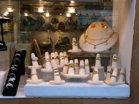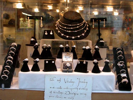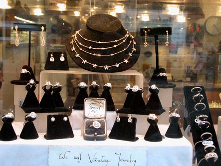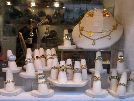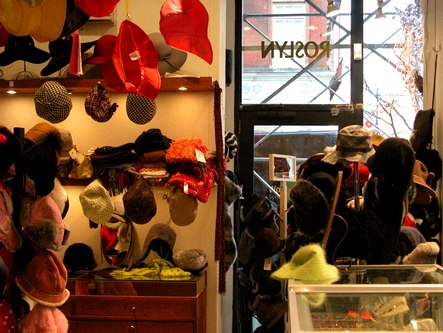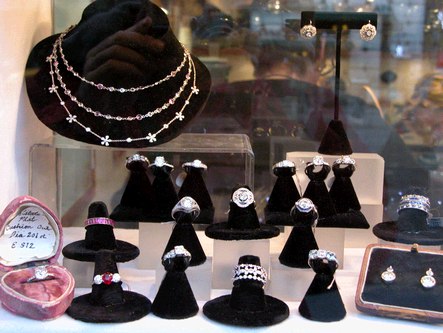 Roslyn, a store selling beautiful jewelry, hats and more, is located at 276 Columbus Avenue, New York, NY (212-496-5050). In addition to the many stunning rings and necklaces they have in stock, they can work with you to custom design jewelry for you, using your stones or theirs. The sales staff is very friendly and helpful. Below are pictures of just a few of the classy jewelry and hats they carry.