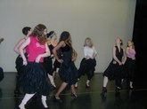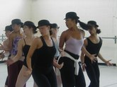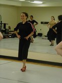 Jun 18, 2003, Jazz Class, Level I: Mary MacLeod, a Broadway performer, who starred in Fosse, led her class in the light, spacious, and breezy rehearsal studio of the Skidmore Dance Center, with top hats and black leotards. She spoke in a nurturing manner about her willingness to lend students tights and other costume props for their upcoming workshop performance. Ms. MacLeod was relaxed and supportive, as the recorded music of Bye Bye Blackbird poured through the studio. The large mirrors enabled students to see themselves in a positive light, as this as such an upbeat, Jazzy experience for all of them. They were all females, but for one male dancer, who received quite a bit of attention. Ms. MacLeod taught concepts of "upstage, stage right", etc. She also introduced the use of "snake hips" and "traveling" across the floor. I was sorry to not be in town for their final performance.