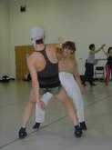 June 18, 2003, Closed Rehearsal of Nightclub: Gina Bugatti, Rehearsal Director, was efficient and strong, yet positive and focused, as she often proclaimed, "One more time please". This was a technical as well as dance rehearsal, with sound and light checks. For this rehearsal, my friend, Chris Vasquez (See Review of Rattlestick Theater), appeared, coincidentally, for his acting performance in Nightclub, playing the role of Narrator. He was first given some new lines at this closed rehearsal, just a few hours prior to the public, Open Rehearsal, and Ms. Ramirez was quite supportive in assisting him with onstage movement and theatrical expression.