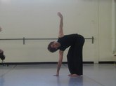 Pedro described the contraction of the lower torso and the internal muscular strengthening, necessary for his choreography. He warned of the necessity of strong arms to create space to keep the message intact. Pedro and Carl skipped through various moods and motifs, with dynamic turning to Mid-Eastern, and back to New Age. Pedro modeled isolation movement from head to toe, and then isolated the hips. He pushed arms and legs against space. The exotically tinged musical accompaniment was perfectly timed and tempered for Pedro's dance exercises.