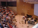 Jazz Institute Participant Concert, Filene Recital Hall, July 11, 2003: Gerald Zaffuts, Jazz Institute Director, is to be commended for this outstanding performance by the many students, who had been carefully screened and chosen, from a pool of candidates, throughout the US and Canada. Eight Combos of Faculty and Students rehearsed in separate spaces in the AM and then performed in the early afternoon, bright and fresh and spirited, with pride and poise. Several pieces had been composed or arranged by the students, during this two-week Institute.