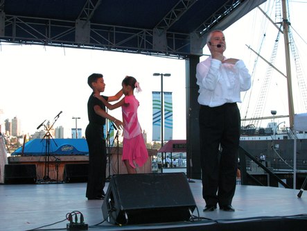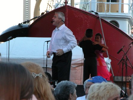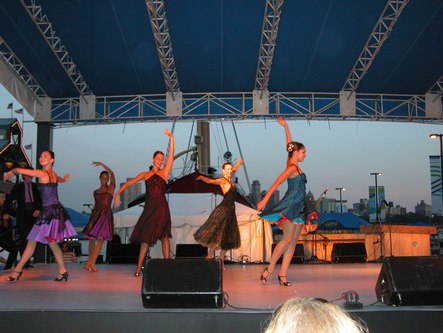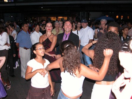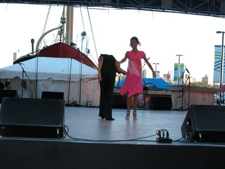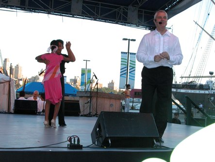 The weather was perfect for dancing outdoors. Tonight was a triple bill featuring a dance lesson by Pierre Dulaine in Mambo, Cha-cha and Merengue, a performance by Ballet Hispanico, and live Salsa music by Tito Rodriguez Jr. The event was presented by the Joyce Theater as part of the River to River Festival.