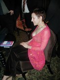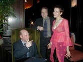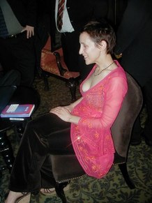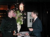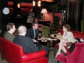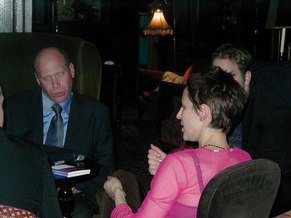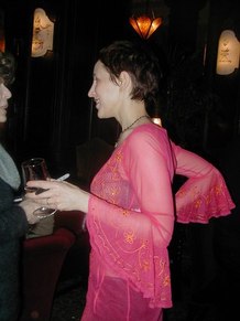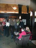 Photos of the Algonquin Lobby can be found, below the review, with photos of Stacey Kent, as she ended her Algonquin performances for January, 2003. Stacey Kent and her very collaborative musicians, including her husband, Jim Tomlinson, on Tenor Saxophone, Colin Oxley, on Guitar, Matthew Fries, on Piano, and Pat O'Leary, on Bass (See Pat at the Iridium Brunch) warmed up a very cold January night, with dim, warm candles, and her ever-so-warm, canary-like voice. Stacey, in her Gypsy styled, red blouse, sang some of my very favorite Standards, and I will indicate, where appropriate, how I could have danced, had there been dancing and had there been a suitable partner. Caveat: I may have the wrong titles, but, instead, significant lines, from each piece of music: "Who's Got the Last Laugh Now" opened the set, and I loved every word and every minute, of this upbeat song of strength and survival. "More Than You Know" was emotionally evocative, with Stacey's throaty and whispering rendition and the guitarist's plucking at the chords of the heart. Jim Tomlinson, on Tenor Sax, equaled her softness in his sensitive interpretation. This group performed with a sincere, honest style, the voice of love, itself. With candles and wine, this was the most melancholy interpretation I have ever heard, of one of my favorite songs.