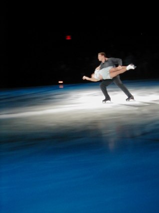 For many years, I have watched the Winter Olympics, with the extreme excitement of ice dance competition. So, tonight's experience with Smucker's Stars on Ice was the culmination of many years of imagining these very same skaters, dancing live in NYC, and in the finest of all arenas, Madison Square Garden. Smucker's Stars on Ice has its own lighting designer, and there were colored spotlights positioned in very effective patterns, some geometrical and some impressionistic, some stationary and some moving, some on one dancer and some on the entire arena. The music was piped in, along with ongoing announcements about the various stars, including jokes and background information. But, this was not a very cerebral event. Au contraire, Smucker's Stars on Ice can be a family event, as the entertainment is mainly visual, often comical, always athletic and virtuosic, and extremely energized.