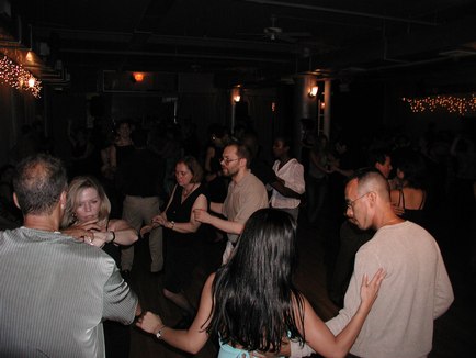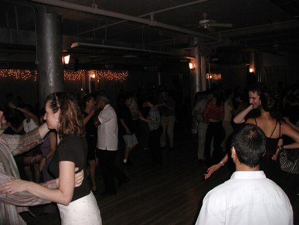 Friday August 16, 2002, Stepping Out Studios held their first ever Salsa party with a live band. The band, Mo' Guajiro, was fabulous. The dance floor was packed. As the pictures below attest, every one had a great time. Stepping Out is currently planning on holding this sort of a party about once per month. Keep your eye on their website for future event announcements.