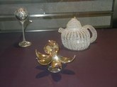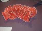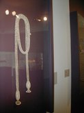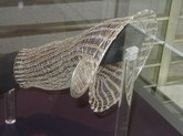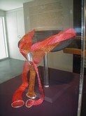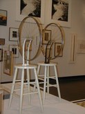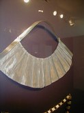 The Art of Arline Fisch (June 27-September 28, 2003): Arline Fisch, a Skidmore alumna, creates decorative body ornaments that sometimes resemble those of ancient cultures. She works with metal to fashion bracelets, necklaces, collars, head ornaments, hats, and torso wraps. Ms. Fisch's work lends new meaning to the term, "heavy metal". I found the head ornament and the shoulder/arm wraps to look unwieldy. It's doubtful that most of these art objects could actually be worn in reality and allow one to still move about, but they are gorgeous and gallant. There is a sterling silver head dÈcor, a looped neck ornament, a devil-faced silver necklace, a red/gold, silver-coated, copper neck and body ornament, and a metal headpiece for sedentary women, only.