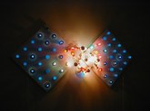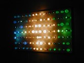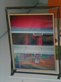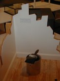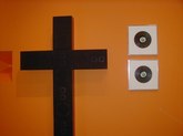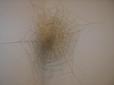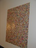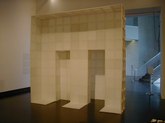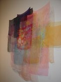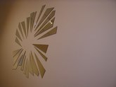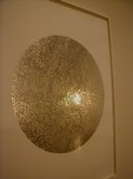 Jim Hodges (June 21-August 31, 2003): Ordinary objects become extraordinary and poignant works with unusual characteristics. Hodges finds innate potential in light bulbs, aluminum foil, and mirrors. There's a collage of cut portions of sheet music, prismacolor on paper, and a large, white structure with stretched canvas. There are strobe lights flashing, bouncing off other installed works and interesting sockets. There's a three-dimensional tree with a photo and collage under glass. Other works include scarves, thread, metal chains, pins, and cut mirror designs.