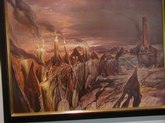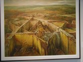 Samuel Bak (July 5-26, 2003): James Chansky helped to arrange this exhibit of Holocaust themes. These paintings depict memories of the ghetto and images of the Holocaust, but in a surreal and dreamlike manner. The occupation of the town of Vilna, where Bak had resided, was the catalyst for this series of works, which show no agony, but, rather, "a sense of a world that was shattered" (Bak). This is a "visual testimony to the disaster". (Tang Notes).
