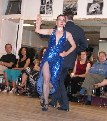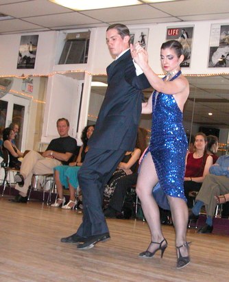 Natalie Laruccia and Anton Gazenbeek performed an expert demonstration of authentic Argentine Tango at Dancesport's regular Sunday milonga. Dancesport is located at 60th street and Broadway in New York City, but they are about to move. They can be reached at 212.307.1111. For more information about Natalie and Anton, check out their website (natalieyantontango.9k.com).