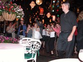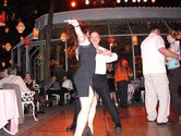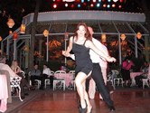 It is nearly midnight and the dance floor is still going strong here at Tavern on the Green. What with the lively dancing last night, Tavern on the Green is 4 for 4 on the nights I have been here. Tonight was a mambo and hustle night, and true to the name, long sets of mambo were intermixed with long sets of hustle. The evening attracted expert hustle dancers such as Lori Brizzi, mu suave mambo dancers and several parties who looked like they had just come from a graduation celebration. Two of these girls, dressed in very elegant outfits, were clearly natural dancers, showing off an abundance of style. All in all, this was another night of exceptional energy per square foot of dance floor at Tavern on the Green.