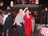 Elimidate, a popular dating TV show where one guy (in this case) starts out dating about five women and slowly narrows his choices to one, was filming an episode. Tonight the guy on the show was dancing with two women at once, surrounded by video cameras, and lots of support staff sporting headsets and clipboards. He, the two women and the video crew did their thing in the middle of a crowded dance floor without displacing people who just wanted to do their own dancing.