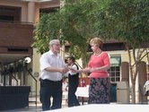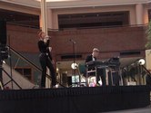 I have been working here in Atlanta for the past week. My co-workers and I had lunch several times at a place called Jock and Jill's (the food is very good, by the way). To get there we had to pass through the Cobb Galleria Centre. Today there was a sign announcing dancing later in the afternoon. After work I got my shoes and checked it out. Except for one younger couple, the attendees were all older. The music was a mix of CDs and live music played by three people including Gary Casten and Beverly Gray. As befits a tea dance, the music was mellow ballroom music. The live music was very enjoyable.