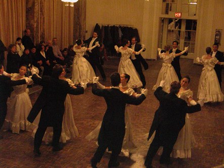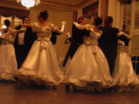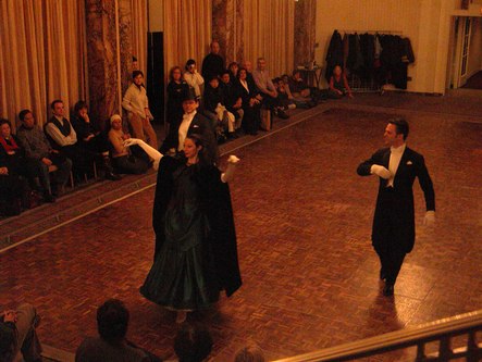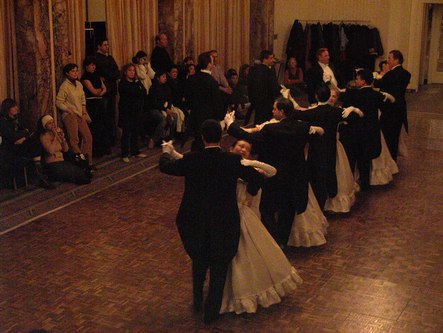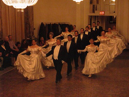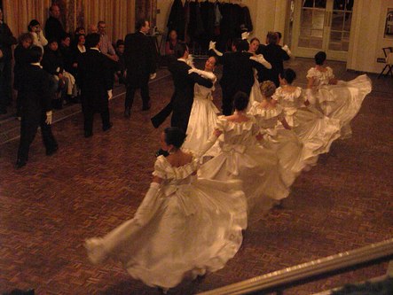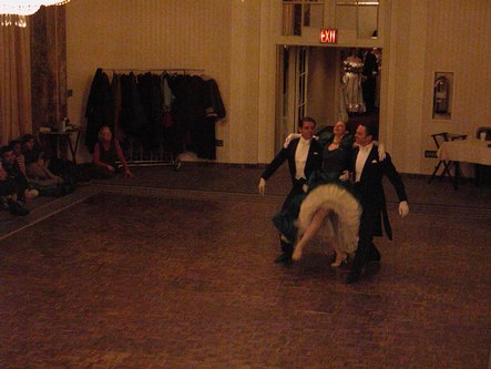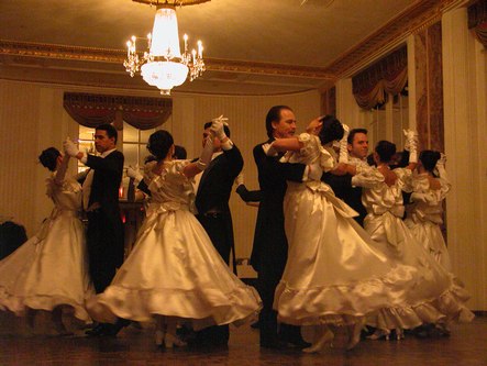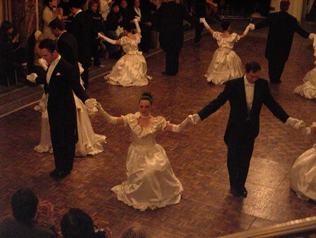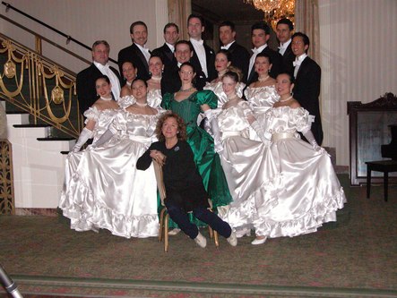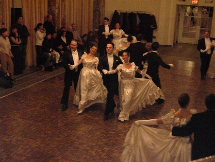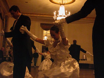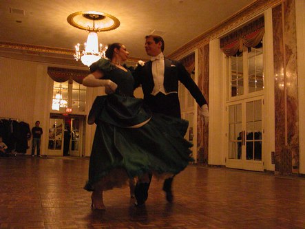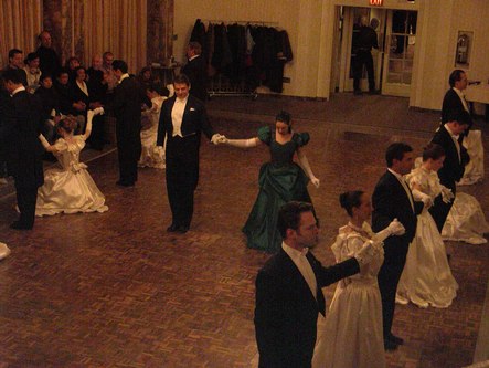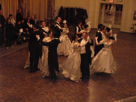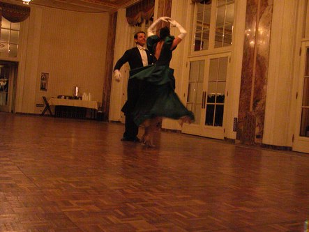 I was invited to observe the rehearsal for the opening dance at the Viennese Opera Ball by Heather Gehring, who is a dancer, dance teacher, choreographer, and fashion model, among other talents. In the pictures, Heather is in the green dress. The opening number was choreographed by Dance Manhattan's Teddy Kern. She has been crafting the elegant opening dance at this event, held at the Waldorf Astoria Hotel, for 24 years. This first dance is a tradition at Viennese Balls from Vienna to Stanford, California, and is an honor for the dancers chosen to participate. The dancers ran through their vintage-influenced routine three times. It was inspiring to watch.