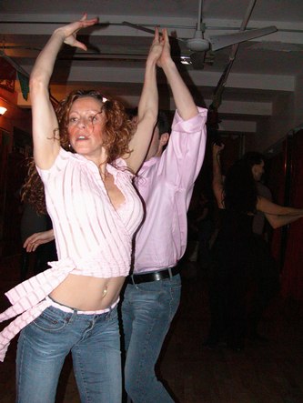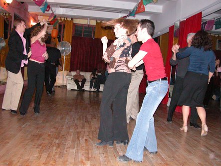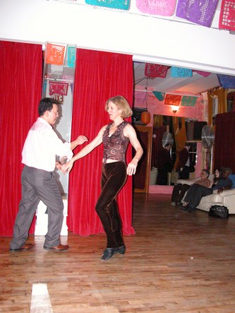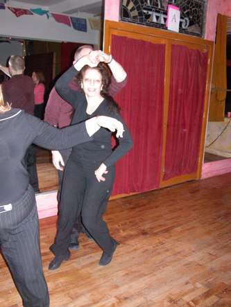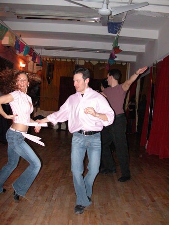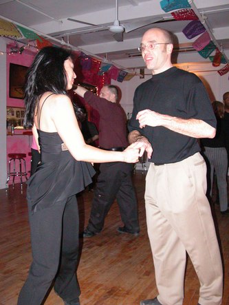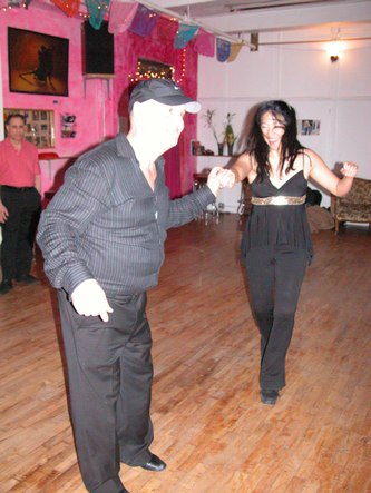 Erik Novoa (www.swingshoes.net) hosted his regular monthly West Coast Swing and Hustle party at Empire Dance. This dance takes place every third Friday of the month. Admission is $12. They play about 80% songs that can work for both West Coast Swing and Hustle, and 20% songs that work for one or the other. This evening's theme was a post-Valentine's Day Pink Party. Most of the dancers showed up wearing something pink.