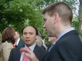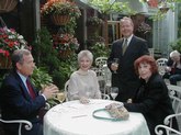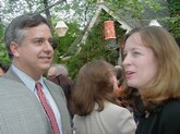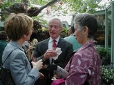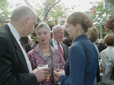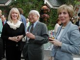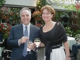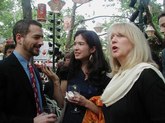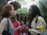 This cocktail reception was held in the exquisite patio of Tavern On the Green, with sparkling lanterns, luscious flowers, the finest wines and mixed drinks, gracious bartenders, most unusual hors d'oeuvres, lovely spring weather, and a bevy of well-known figures in the New York theatre scene. As you can see from these candid photos, the guests were well cared for and well hosted by the Tavern On the Green Staff, as well as by Springer/Chicoine Public Relations. Playwrights, Actors, Producers, Cosmetics Entrepreneurs, Athletes, Business Executives, and Patrons of the Arts all mingled in this fantasy setting, like an elegant stage set, as only Tavern On the Green can create, in its enviable position at the edge of New York's best section of Central Park, and only a few blocks from Lincoln Center (See Tavern Outdoor Dance Events Listing).
