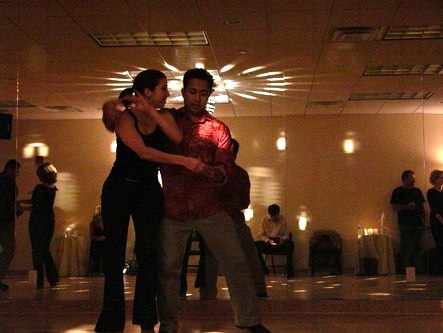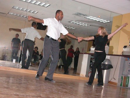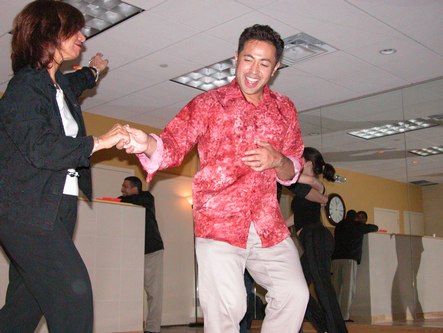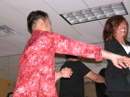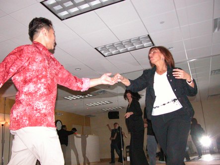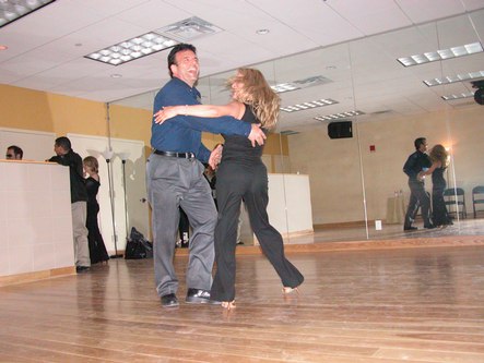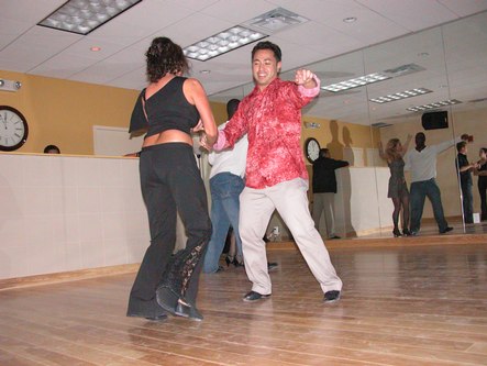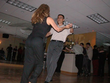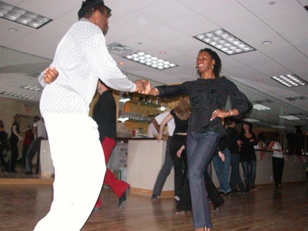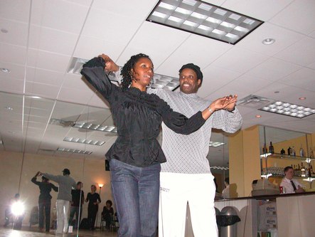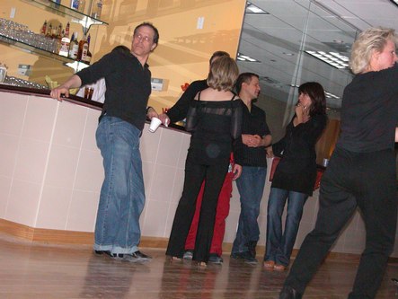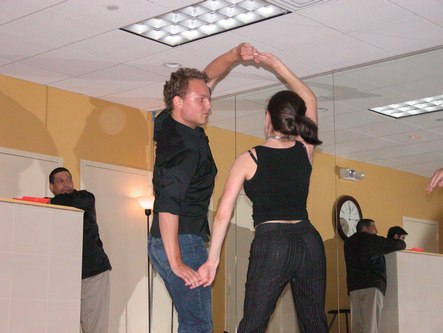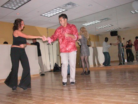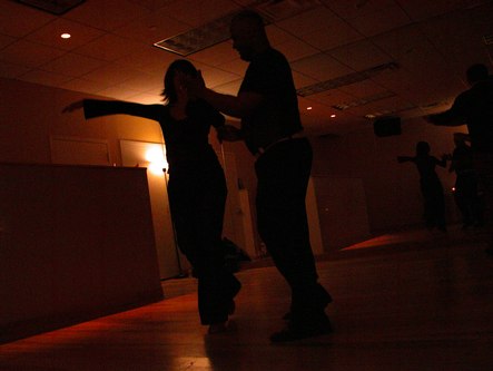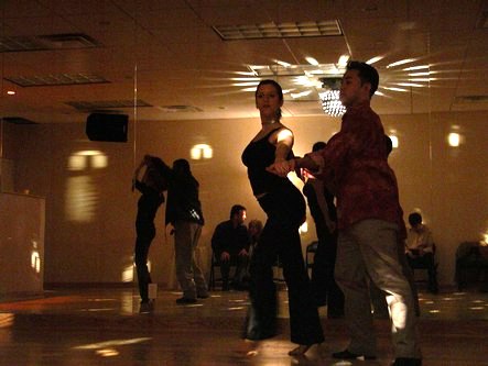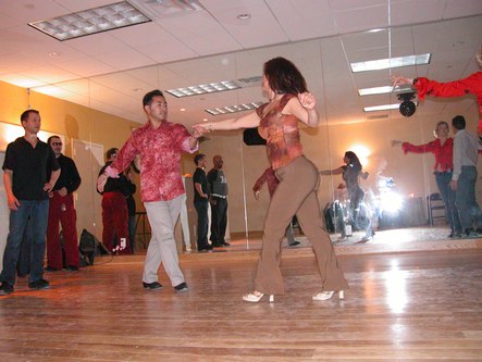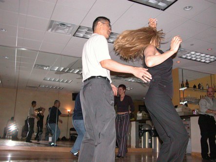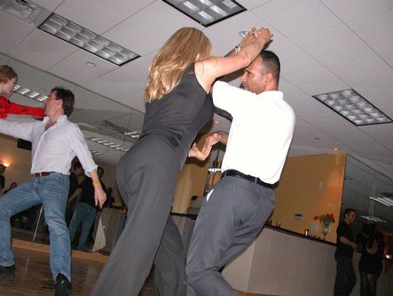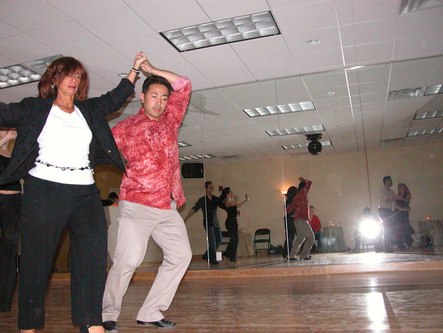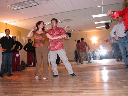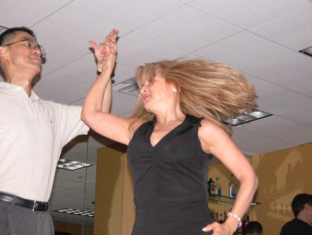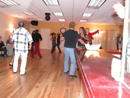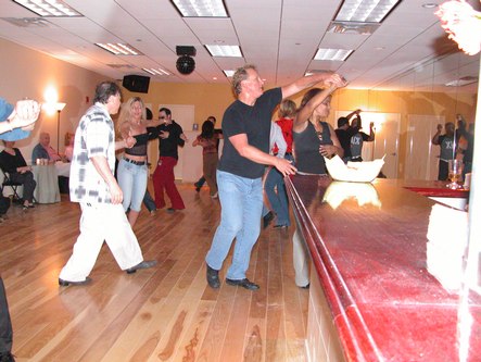 The party attracted some very good Hustle dancers. They showed off an abundance of styling, smiles and flying hair. The party also featured two other rooms with West Coast Swing and Freestyle.