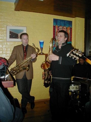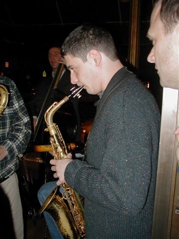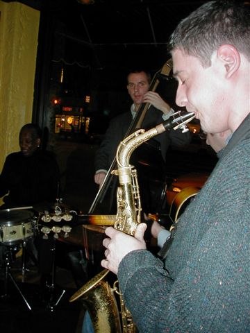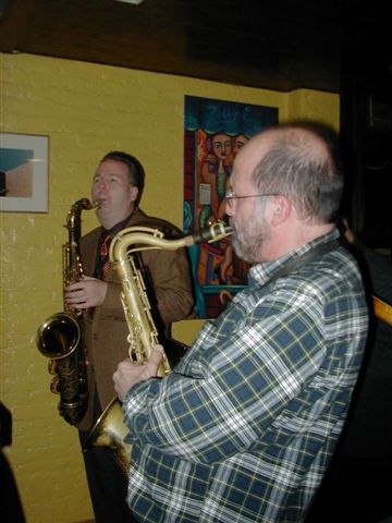 You can read more about the Harry Allen - Joe Cohn Quartet on RobertaOnTheArts.com. Tonight, Robert Abrams, also a Zuni regular, joined me for a light dinner and drinks, while we listened to Harry, Joe, and the band. I had succulent, steamed mussels with a dry chianti or two. Harry, Joe, and the band, with numerous guests from New York and Italy, played from their repertoire of Swing, Foxtrot, Ballads and Blues. You can almost always recognize the tunes they play, some of which can last forever, with fresh improvisations, as each guest artist takes a timely turn. Of course, Harry Allen and Joe Cohn are renowned stars on the scene, and Harry's swinging sax sound and Joe's lightning guitar fingering are always the most memorable moments.